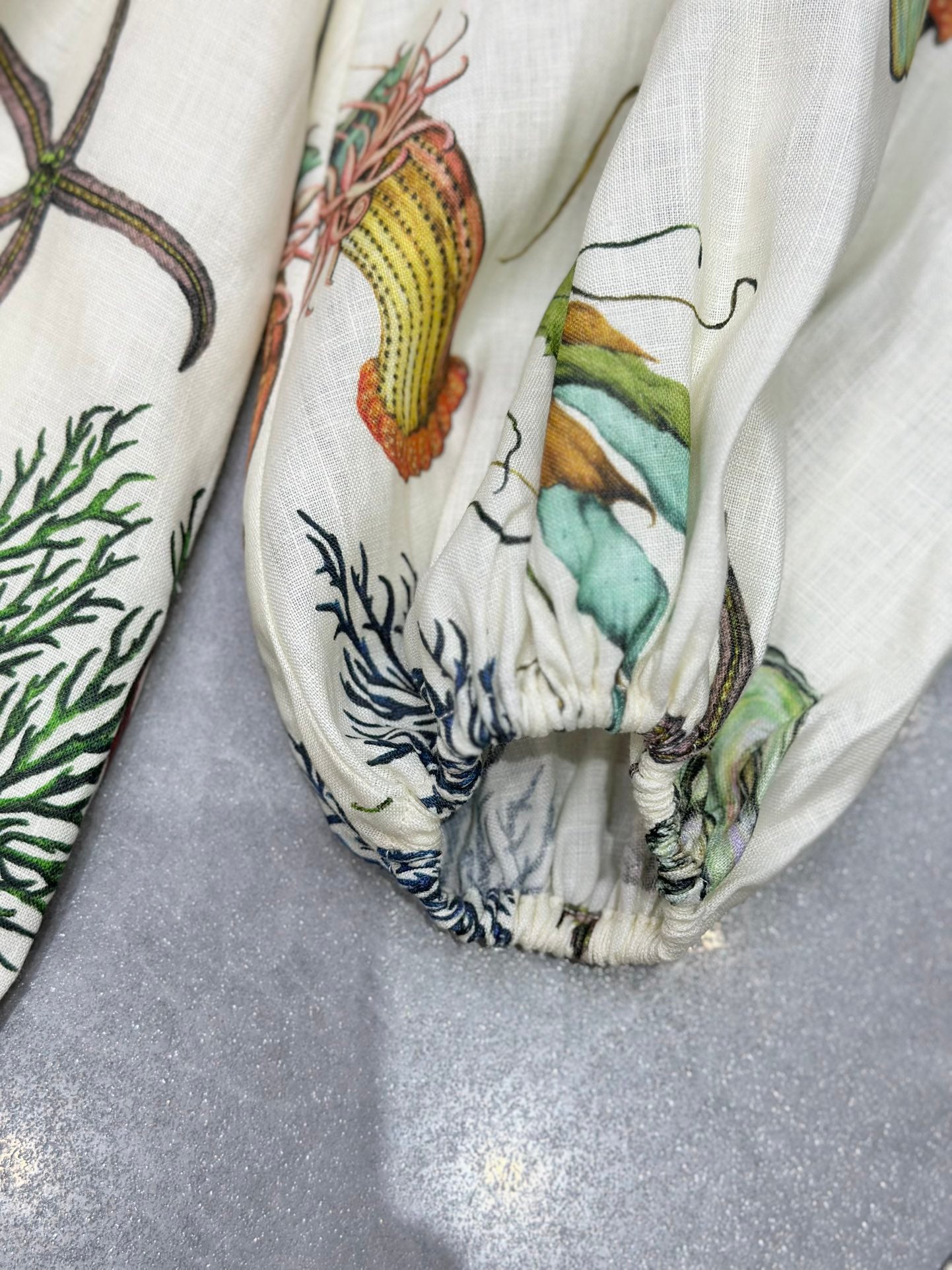 - Relaxed shirtdress illustrated with sea-themed artwork created in collaboration with Sam Pauletto